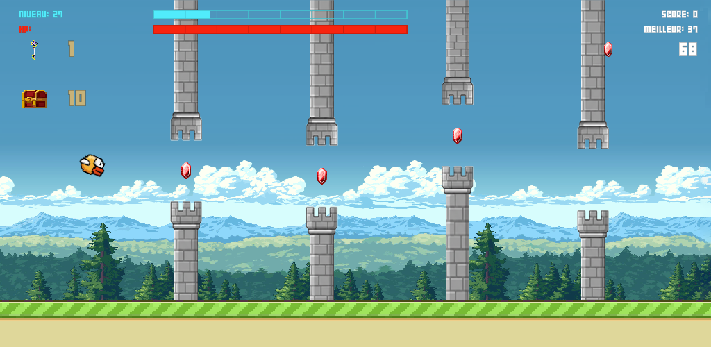 Enter the world of Flappy RPG a game similar to Flappy bird, find treasure chests, battle bosses, collect and improve your weapons, level up your bird !